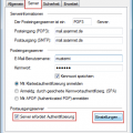 Wechseln Sie auf die Registerkarte Server und setzen Sie nun den Haken bei Server erfordert Authentifizierung. Klicken Sie anschließend auf Einstellungen.